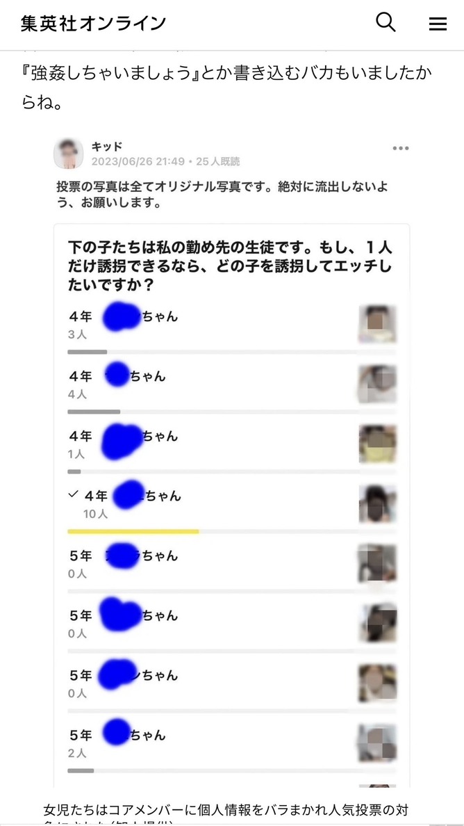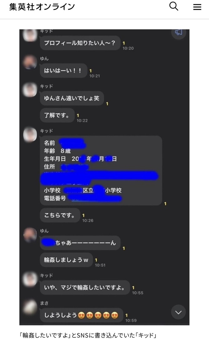 ・女児の本名や学校、住所も共有し「家の近くで待ち伏せしたら出会えるかも」「輪姦したい」「レイプしちゃうかも」@yotsuya_otsuka pic.twitter.com/Ezmxbfj1XR— 滝沢ガレソ🌟 (@takigare3) August 12, 2023