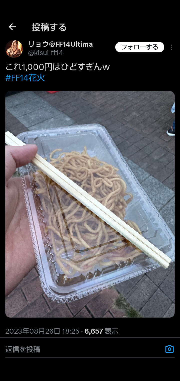 【悲報】『FF14祭り』で売られた『1000円の焼きそば(価格変動)』あまりにも『ボッタクリ』だと炎上 2023/8/27 哲学ニュースnwk 1: それでも動く名無し 2023/08/27(日) 06:50:16.21 ID:opu/Zf2vd お祭り価格にしてもこれはひどいよ 生活に役立つ雑学スレ 『お風呂の鏡は歯磨き粉で軽くなでると汚れが落ちて曇らない』 続きを読む Source: 哲学ニュースnwk