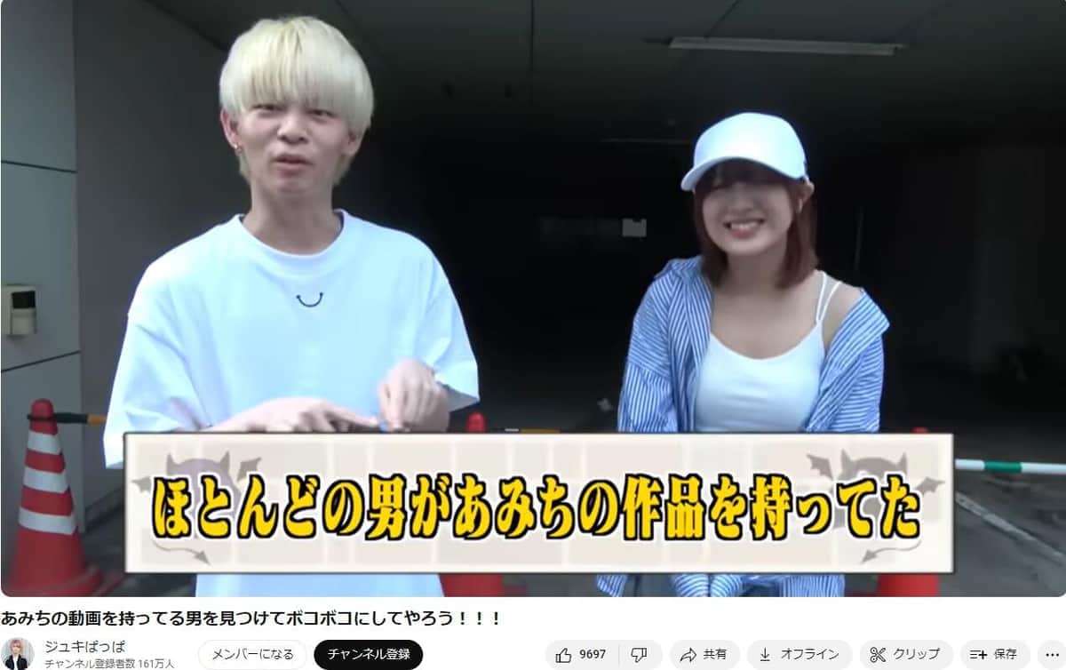 「あみちの◯◯撮り見たことない?」ジュキヤさんは「あみちの動画を持ってる男を見つけてボコボコにしてやろう!!!」と題した動画を投稿した。