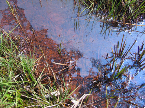 鉄バクテリアっていう土壌に住んでるバクテリアが作る皮膜で油膜じゃないらしい