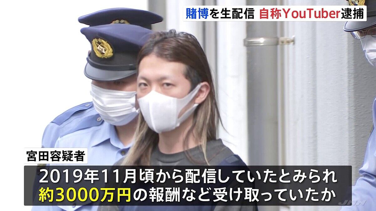 宮田容疑者はカジノサイトの運営側から動画配信の見返りに報酬をもらう契約をしていた。2019年11月ごろから自身が運営する「寝る前にch」で配信しており、配信収益と合わせて約3000万円の入金が確認されているという。県警は他のカジノサイトでも賭博行為をしていたとみて、他の関与者の有無などを調べる。