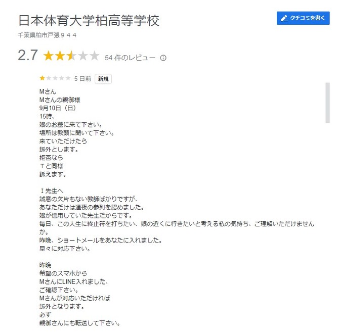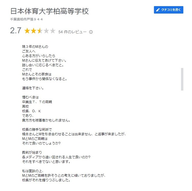 おそらくいじめ自◯被害者の親がレビューに書き込んだ