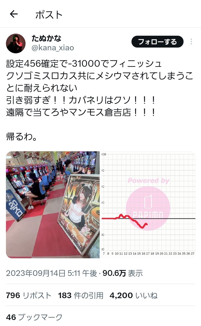 遠隔で当てろやマンモス倉吉店!!!帰るわ。 pic.twitter.com/UnkrNw4GjT