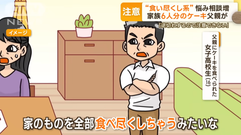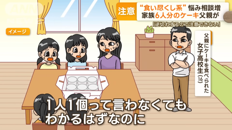 「食い尽くし系」悩み相談増加 家族6人分のケーキを父親が…“育った環境”影響か テレ朝news食事の際に家族の分まで食べてしまう「食い尽くし系」と呼ばれる人たちがいます。専門家は、“食欲の秋”を迎えたこの時期、特に注意が必要だと話します。