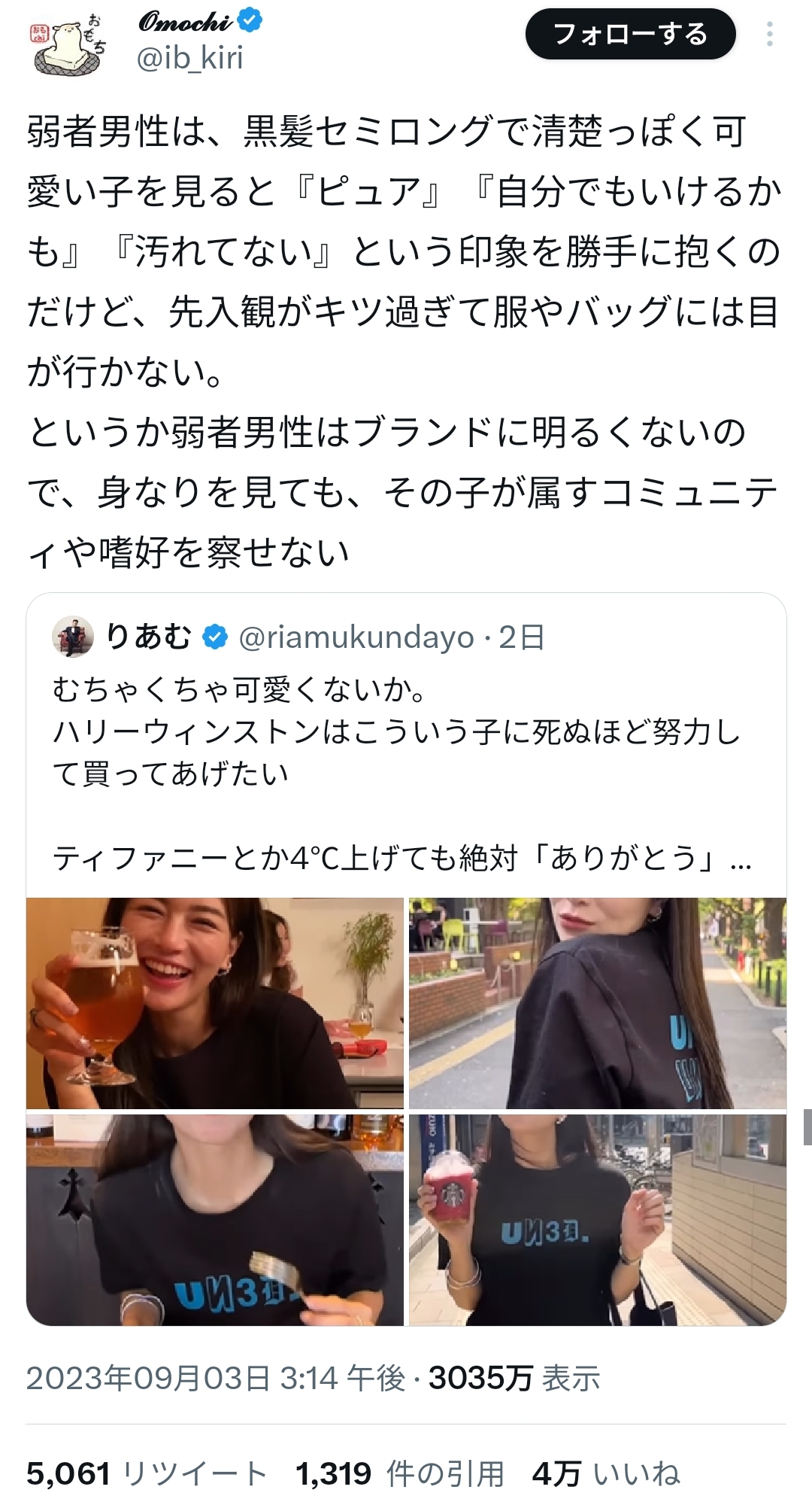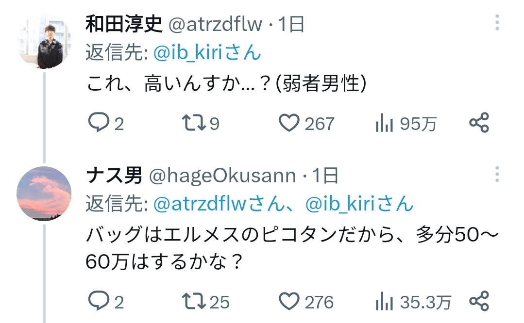X(twitter)民さん、他人のブランドで弱男煽りをしてしまう… 2023/10/6 キニ速 1:名無しさん@おーぷん: 23/10/05(木) 15:10:06 ID:j2ry 2:名無しさん@おーぷん: 23/10/05(木) 15:10:23 ID:j2ry 4:名無しさん@おーぷん: 23/10/05(木) 15:10:38 ID:j2ry 7:名無しさん@おーぷん: 23/10/05(木) 15:11:06 ID:j2ry 5:名無しさん@おーぷん: 23/10/05(木) 15:10:51 ID:RQn5 弱者男性が好きそうな見た目してるわ 続きを読む Source: キニ速