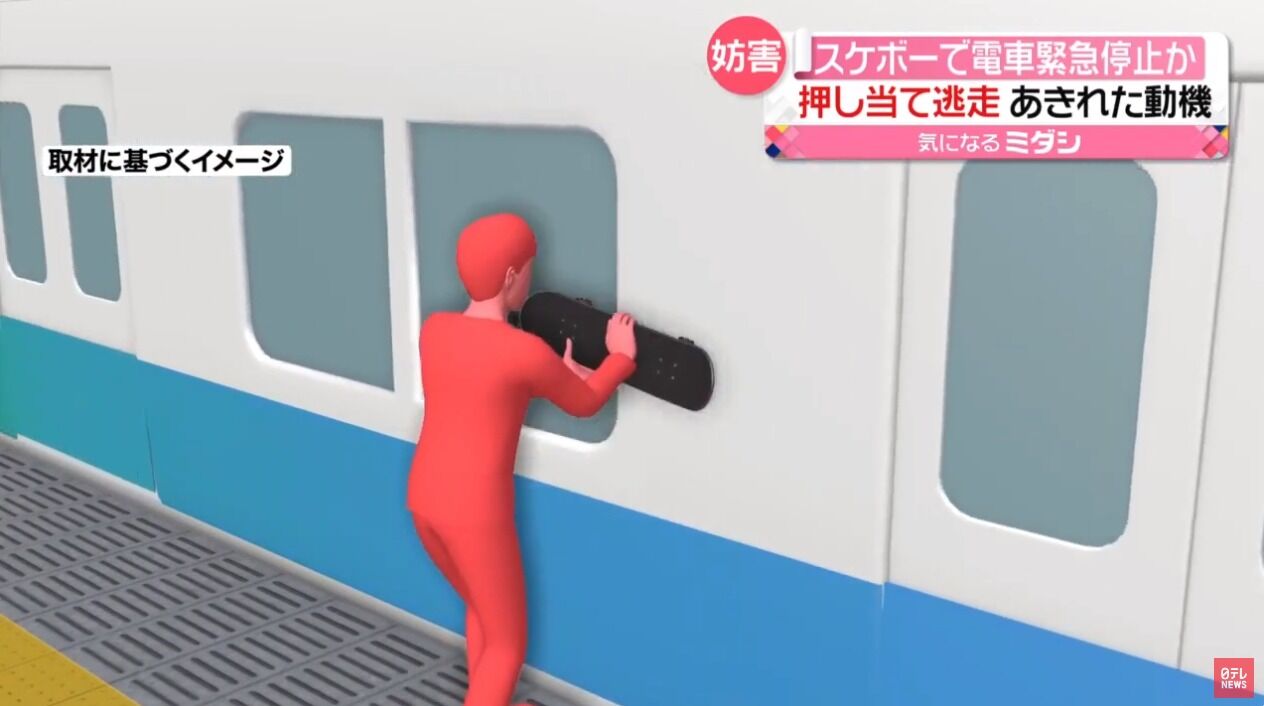 電車に乗り遅れた男、スケボーを車両に押し当て電車を緊急停止させる 逮捕、送検