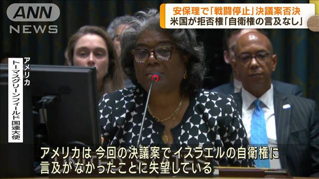 国連の安全保障理事会はイスラエルとハマスの衝突を巡り、「戦闘の一時停止」を求める決議案を採決しましたが、アメリカが拒否権を行使し、否決されました。