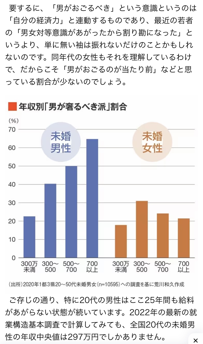 男性がおごるべき派「年収別」に見た興味深い結果「デート代は男性が負担すべき」と思う男女の割合