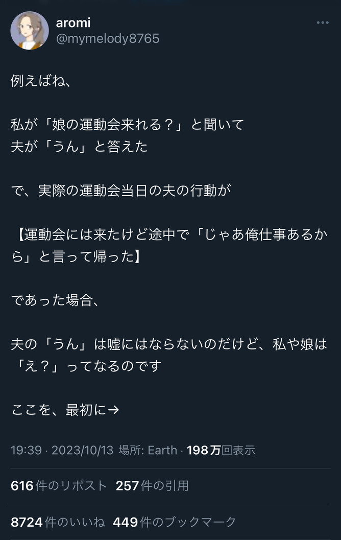 夫の「うん」は嘘にはならないのだけど、私や娘は「え?」ってなるのです