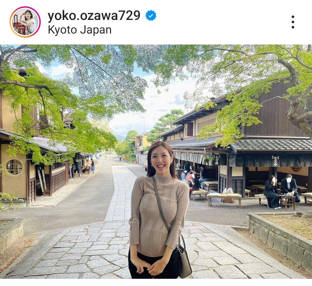 妊娠中のフジ小澤陽子アナ、ふっくらお腹で京都へ「ずいぶん大きくなりましたね」「美しい」の声