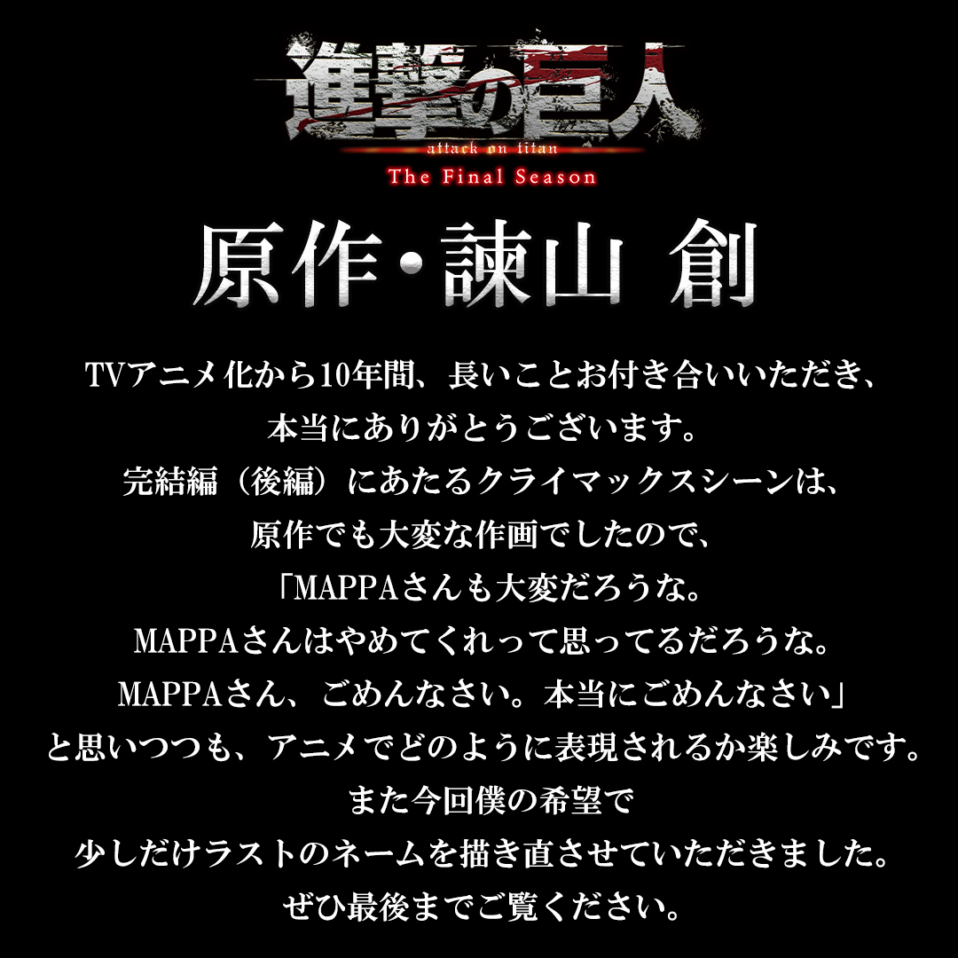 85分スペシャル放送!… pic.twitter.com/I8WgYyCiIB— アニメ「進撃の巨人」公式アカウント (@anime_shingeki) November 1, 2023