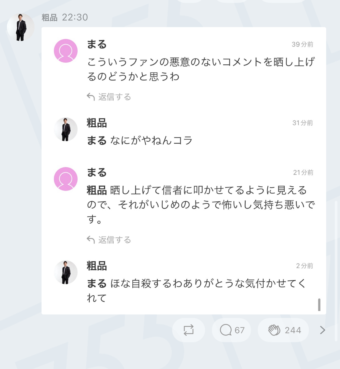 自分の理想を押し付けてくるファンのコメントを晒す