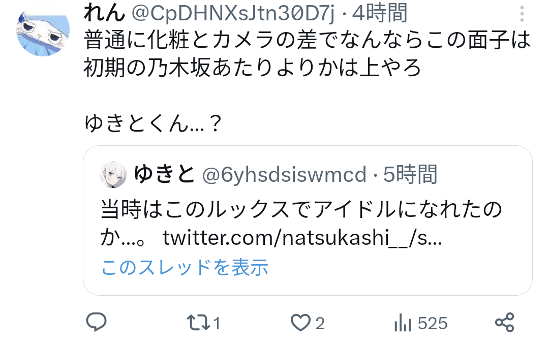 X民「1980年代ってこのレベルの顔でもアイドルになれたんだな」→おじさまブチギレwwww 2023/11/5 キニ速 1:それでも動く名無し: 2023/11/04(土) 21:47:54.52ID:tyjTBGmo0 ↓ 2:それでも動く名無し: 2023/11/04(土) 21:48:34.84ID:tyjTBGmo0 俺たちの青春を馬鹿にするなあああああってキレてる 10:それでも動く名無し: 2023/11/04(土) 21:55:48.84ID:1OJ2xxro0 メイクの差だろ大半は 続きを読む Source: キニ速