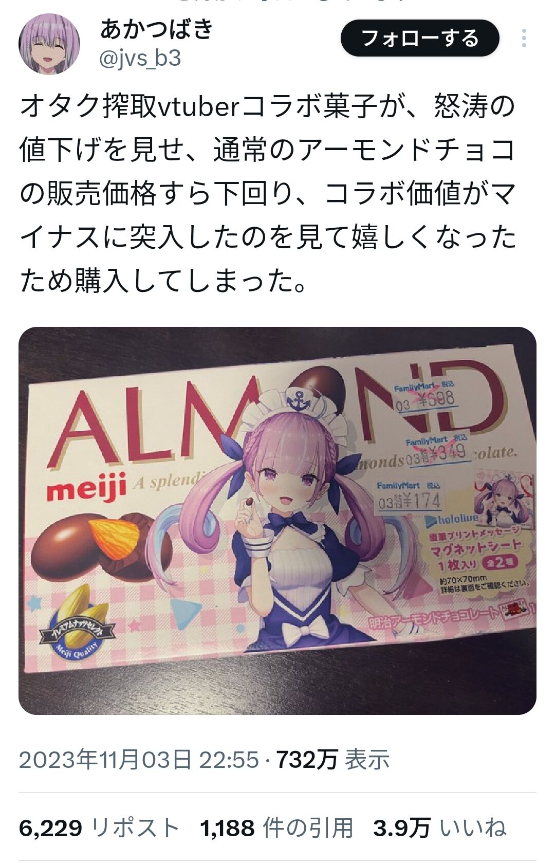 【画像】VTuberコラボお菓子、ダダ余り投げ売りされる 大人気なのになぜ…