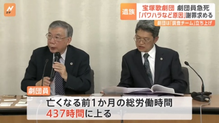 遺族の代理人の弁護士が10日、厚生労働省で記者会見を開き、劇団員は劇団と業務委託契約を結んでいて残業時間とされる時間は1か月277時間余りの長時間に達し、労災の認定基準を超えていたことを明らかにしました。