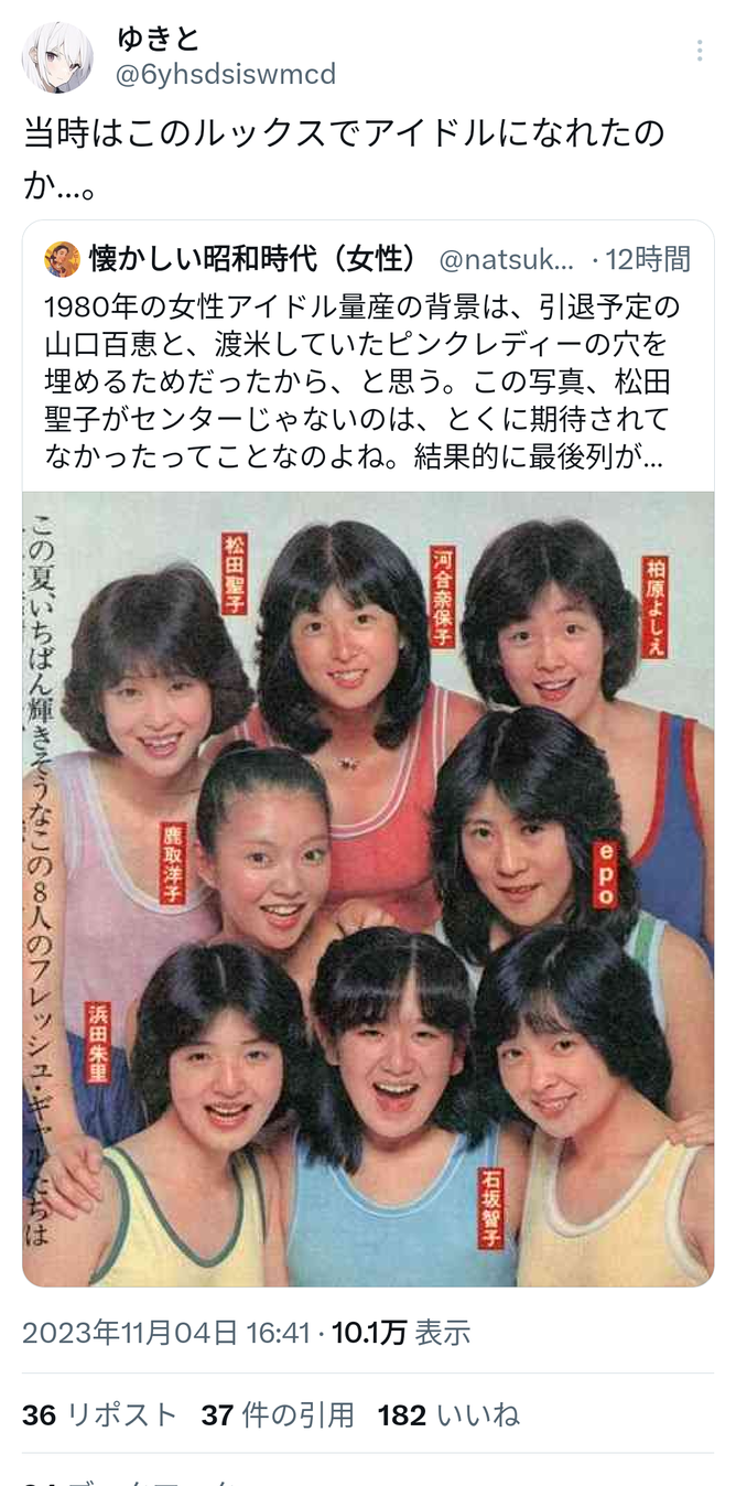 初めてかわいいやつ出てきたなと思ったのは斉藤由貴