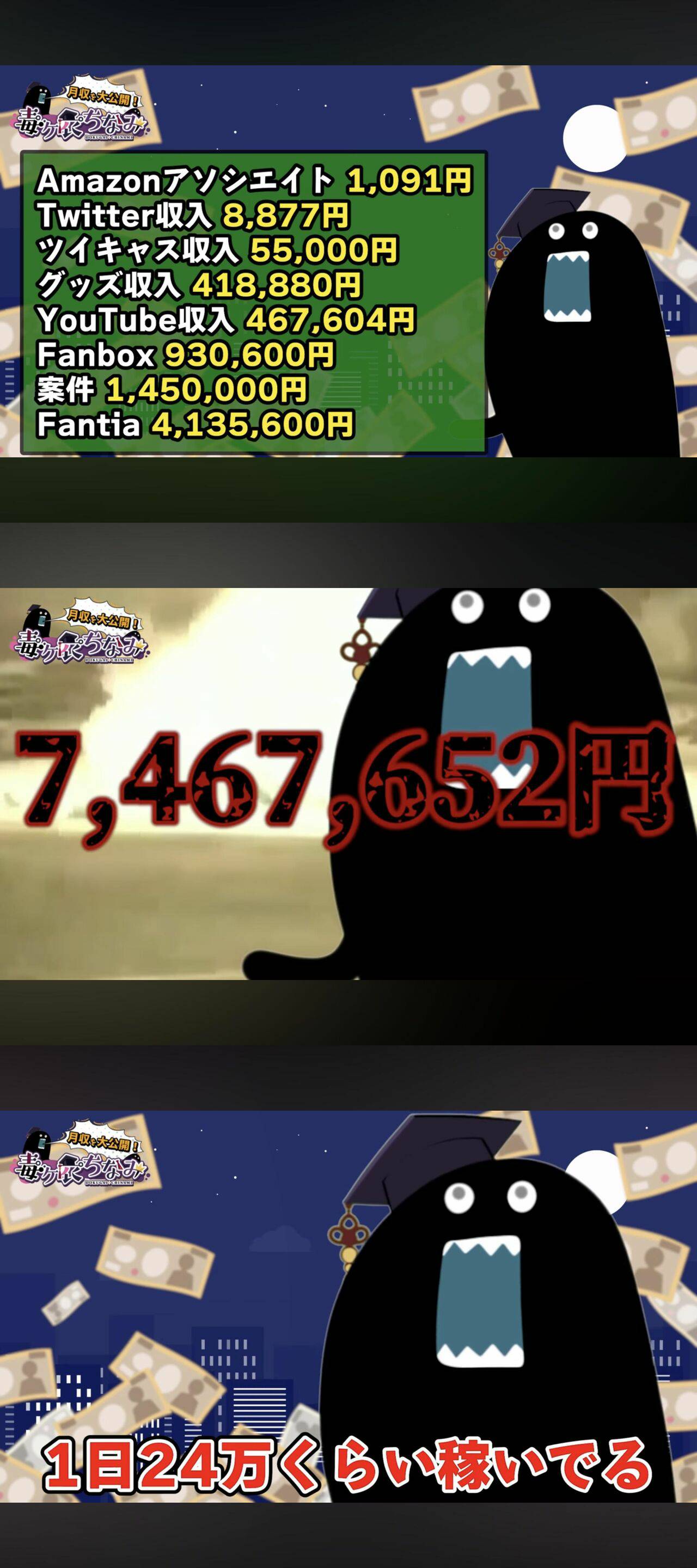 今回投稿された動画では、そんな毒ヶ衣が9月分の月収について公開。合計金額は746万7,652円となっており、これは「過去最高の2.5倍から3倍」ほどの金額だという。