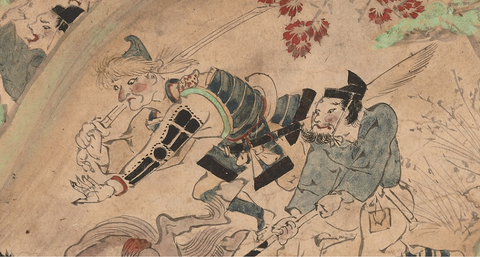 13世紀。絵巻物の資料となるが、『男衾三郎絵詞』に描かれた遠江国山賊の中に、金髪で鼻が高く、頬が赤い北方民族と見られる異形の武者が見られる(詳細は、「男衾三郎絵詞#備考」を参照)。
