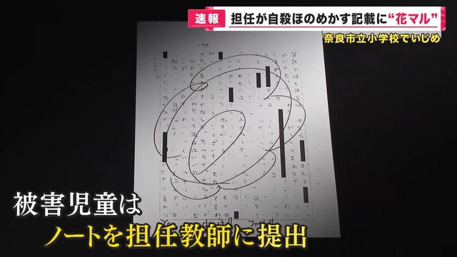 奈良市立小学校に通っていた女子児童は、3年前から同級生にあしを蹴られてけがをしたり、鉛筆で背中を突かれたりするいじめを受けていました。去年6月、女子児童が日頃の悩みなどを書き込み担任の教師に提出したノート。そこに記されていたのは…【女子児童】「私は死ねばいいのに。自分なんていなければよかった」しかし、担任教師はこのページに大きな花丸を書いたうえ、「You can do it!!(あなたならできるよ)」というメッセージを書き、児童に返したというのです。続きはこちら