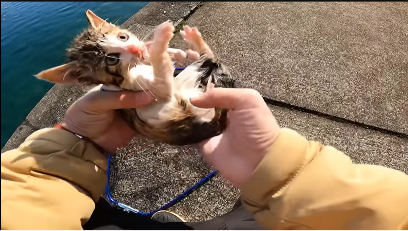 釣りをしてたら偶然海に浮かんでる子猫を発見