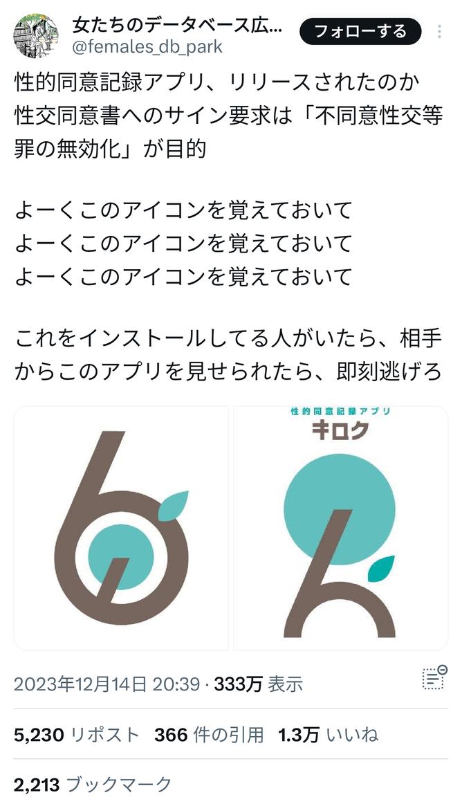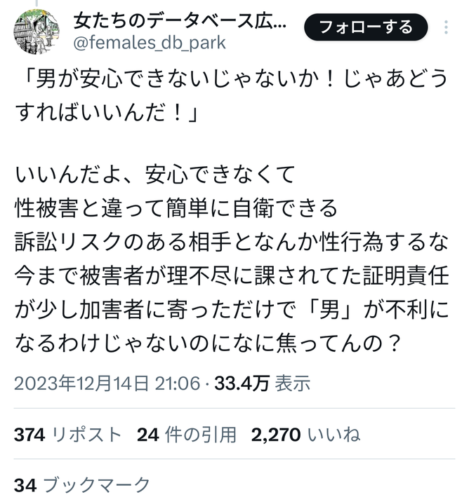 — 女たちのデータベース広場 (@females_db_park) December 14, 2023