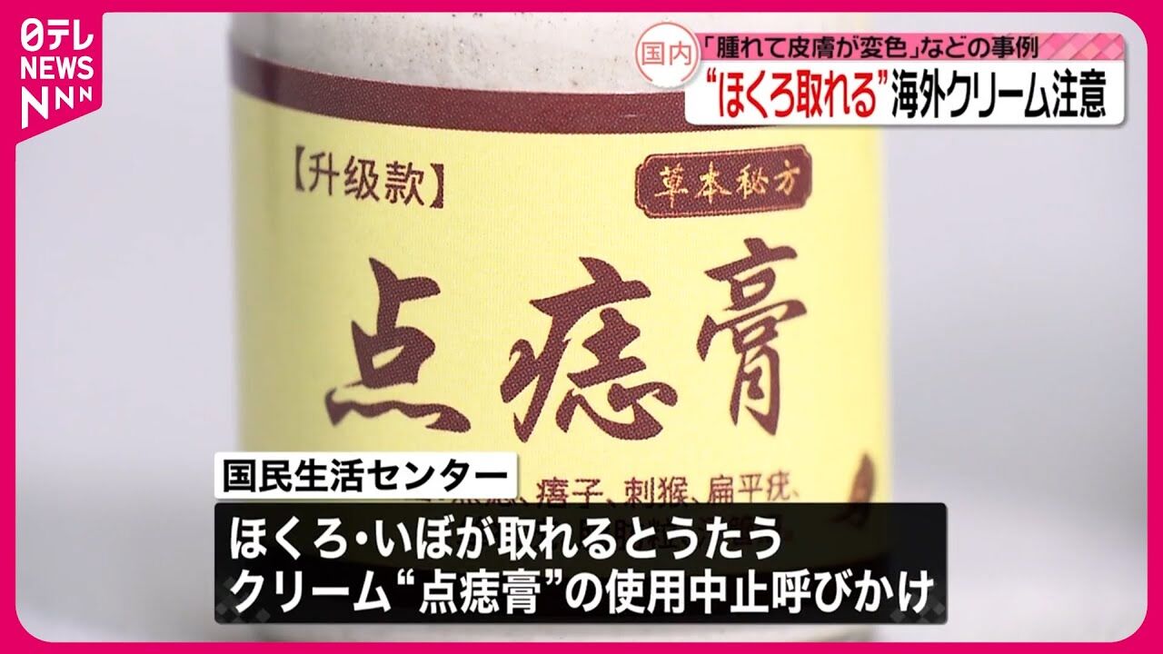 「ひと塗りで安全にほくろやいぼが取れる」などとうたい、ネットで販売されている「点痣膏」という中国製と見られるクリームについて、国民生活センターが分析したところ、重い皮膚障害などを引き起こすおそれがあることがわかり、使用の中止を呼びかけています。https://t.co/EyoaRyqzc4
