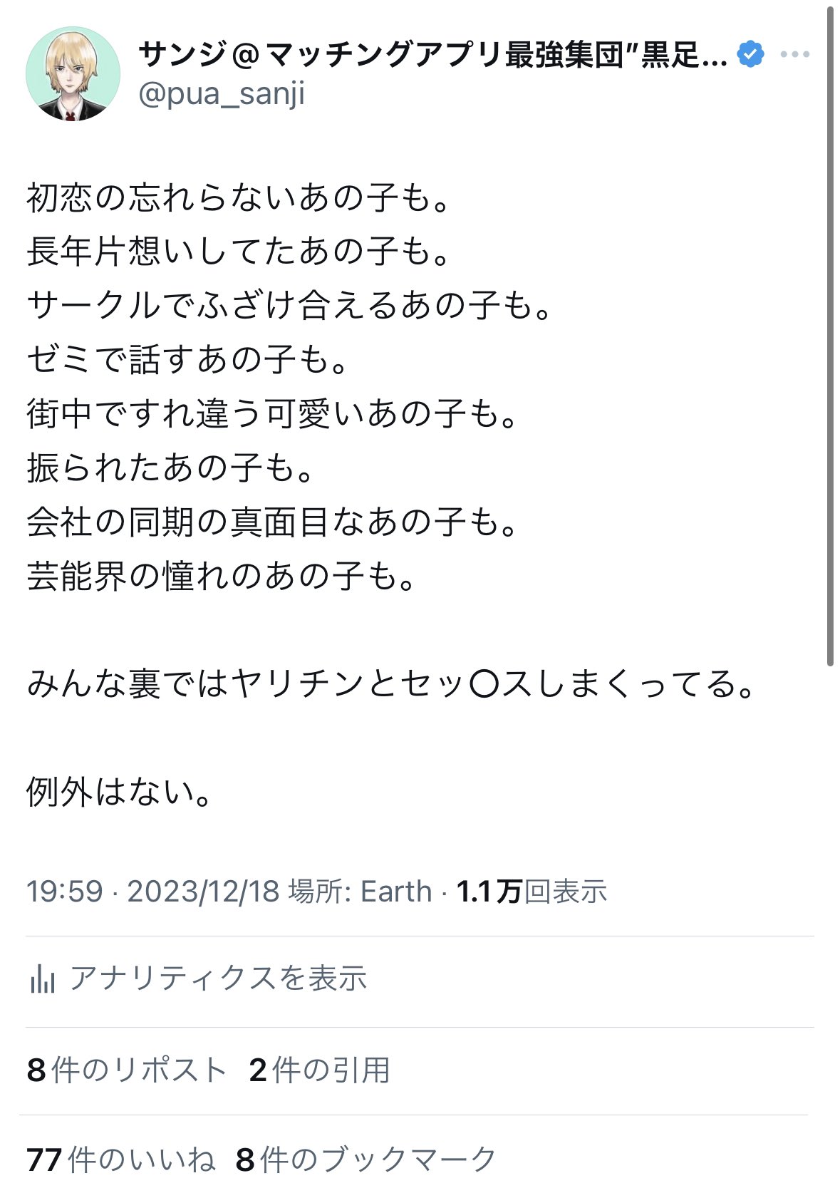 サンジ「女は例外なく裏でヤリチンとセ●クスしまくっている」