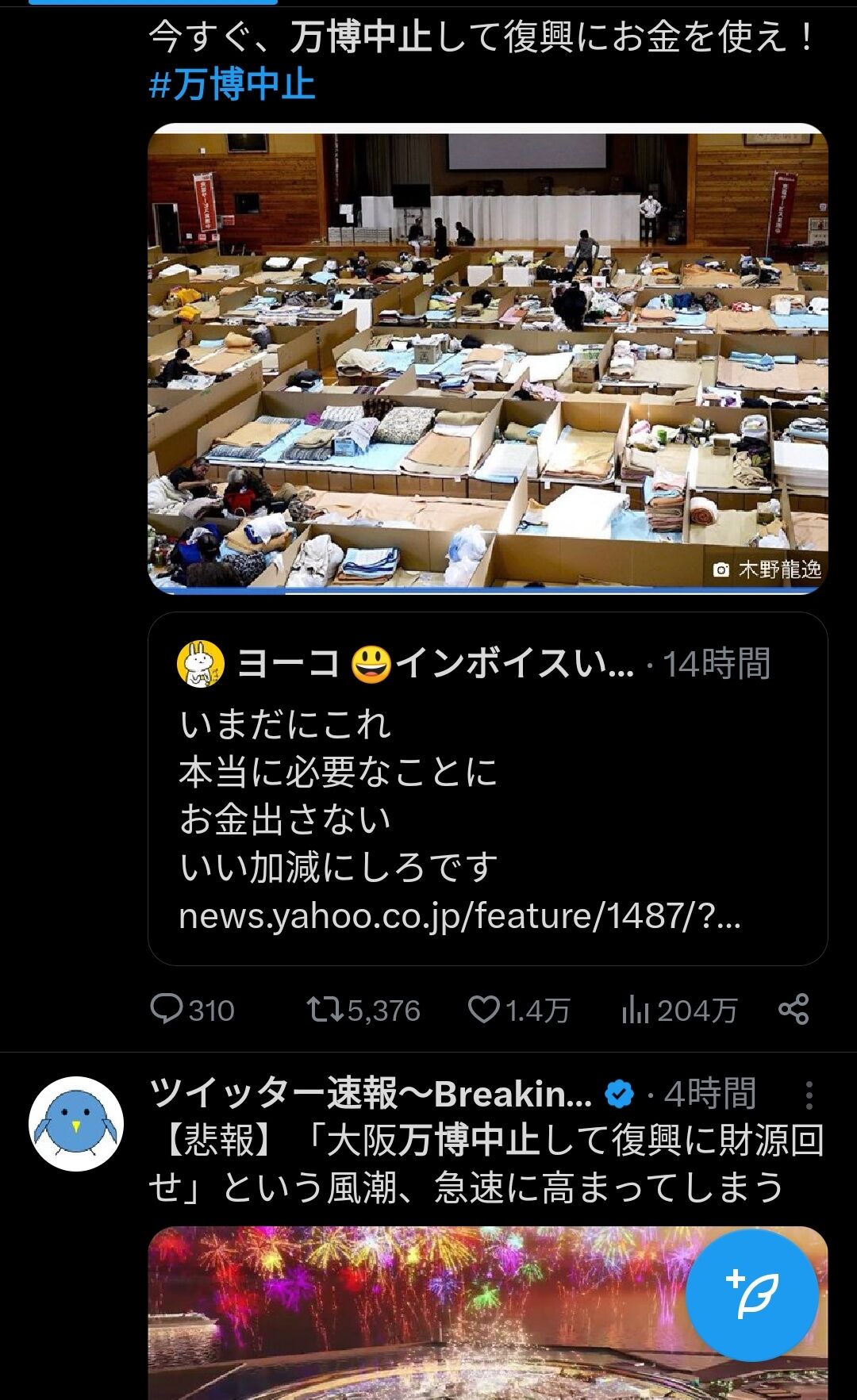 X(旧ツイッター)で「万博中止して金を災害復興に回せ!」の声が高まる 2024/1/2 哲学ニュースnwk 1: それでも動く名無し 2024/01/02(火) 14:15:58.57 ID:qdmwG+cIM 一理あるよな😀 法律って「知らなかった」じゃ済まないってひどすぎだろ、学校で法律全て教える授業やるべきじゃないの? 続きを読む Source: 哲学ニュースnwk