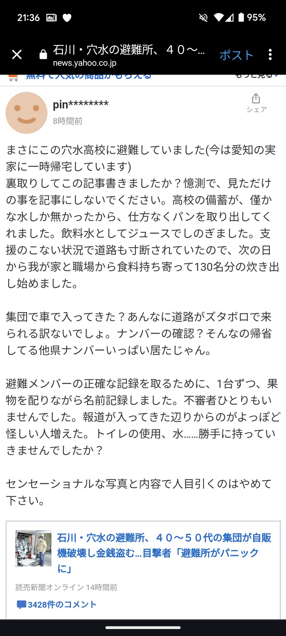 腹たったから書き込んできた。https://t.co/DVRGwSlGFP— ナンシー/令和六年1/1穴水にて震災経験者 (@HARUpin_u) January 6, 2024