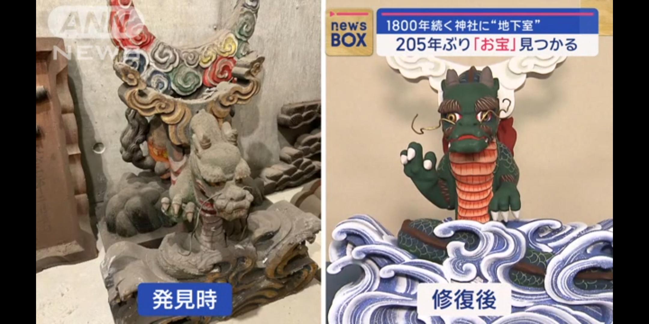 しかし、それよりも気になるのが、この真新しさ。こちらが発見された時の写真。色が抜け落ちていたものを「伝統工芸師」が修復してよみがえりました。