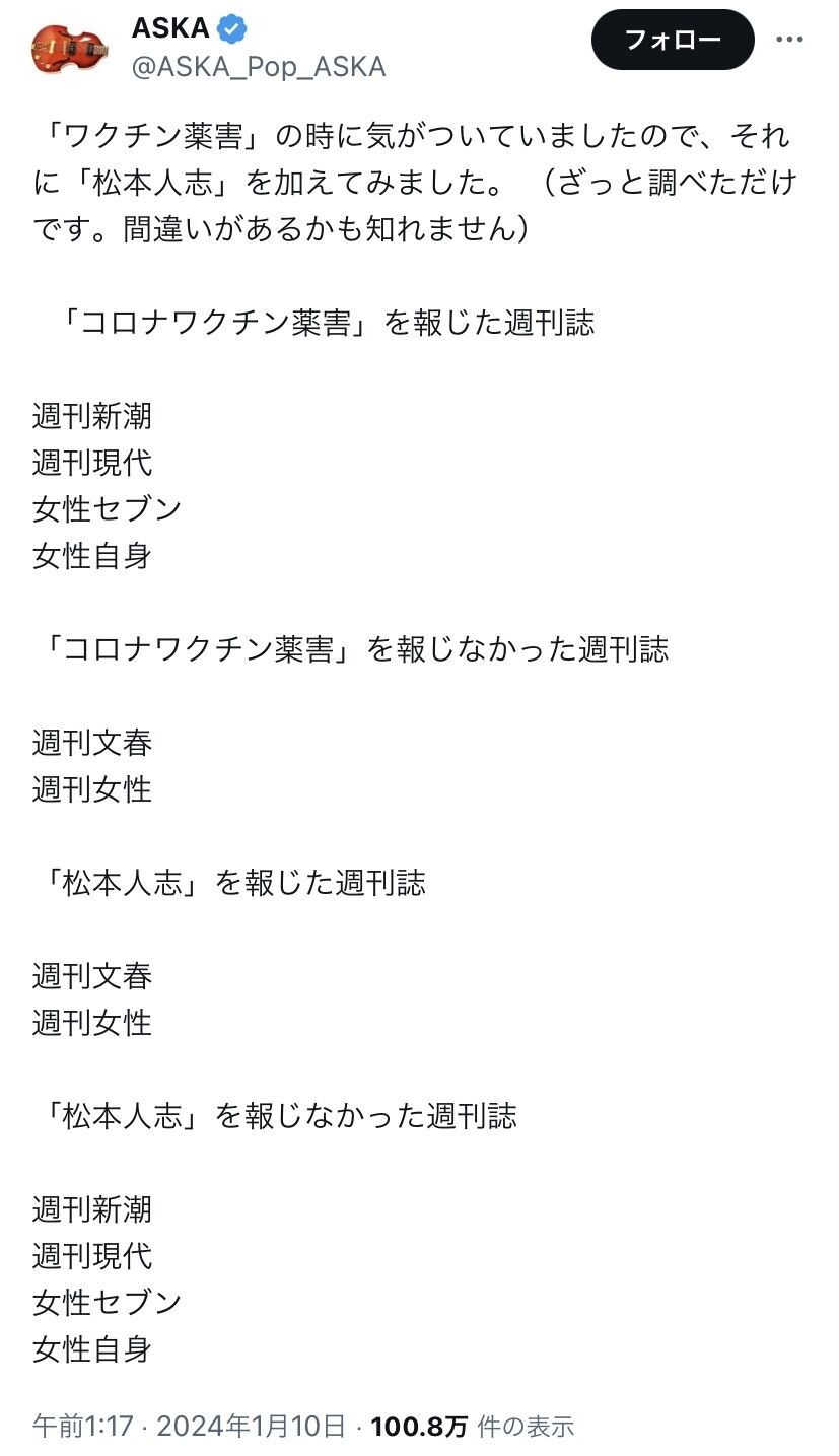 松本人志騒動、ASKAが新たな視点から参戦 2024/1/10 哲学ニュースnwk 1: それでも動く名無し 2024/01/10(水) 10:31:28.75 ID:UD0ieJ0Hd 【画像】AIが出力した韓国社会の風刺画、あまりにもクオリティが高すぎると話題に 続きを読む Source: 哲学ニュースnwk
