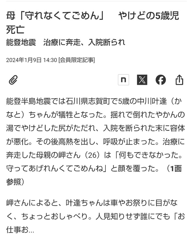 「なんで入院できなかったのか…」地震でやけどを負った5歳の男の子が死亡 母親がつらい胸の内を語る 能登半島地震