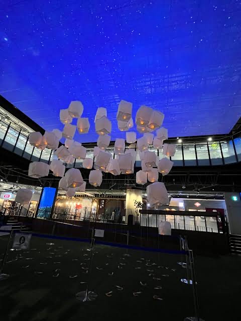 商業施設内に人工芝広場作って天井にLEDの青空投影