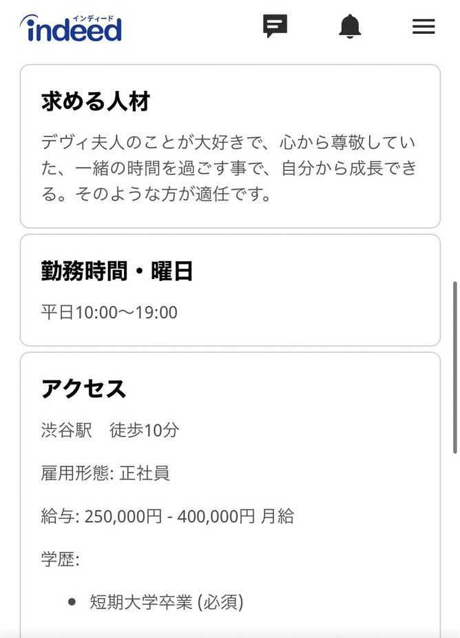 月給25万円、またデヴィ夫人の直面接があると話題になっている。
