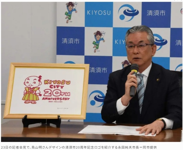 清須市は2005年7月7日に発足し、25年に20周年を迎える。記念事業を盛り上げようと昨年9月議会でロゴ制作を決定した。市民からの公募も検討したが、「相談だけでも」と昨年10月に出版社の集英社を通して鳥山さんに打診したところ、制作に応じてくれたという。担当職員は「これまで鳥山先生はほとんど自治体の依頼を受けておらず、ダメ元だった」と振り返る。