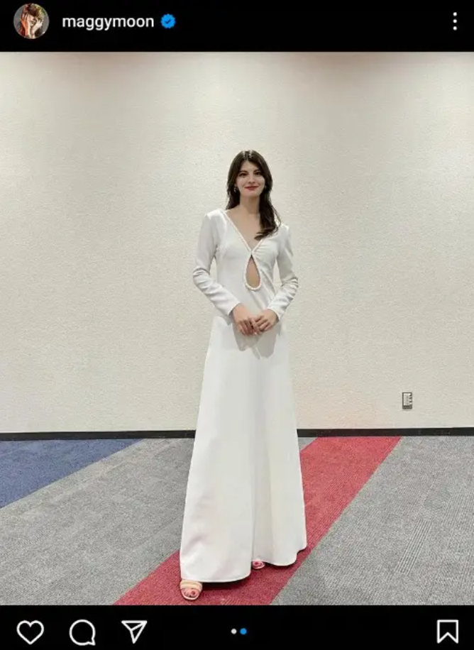 マギー “穴あき”ホワイト・ドレス姿披露に「透明感のあるナチュラルな美しさ」「神がかってます」