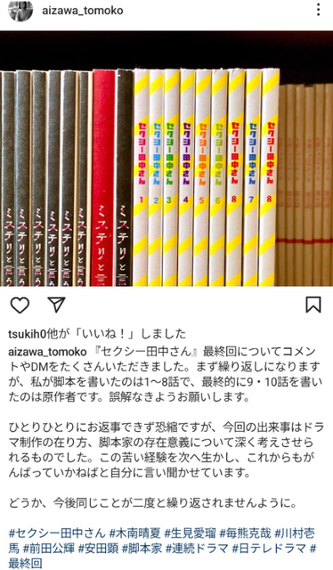 原作者の芦原妃名子です。《ドラマ「セクシー田中さん」について》