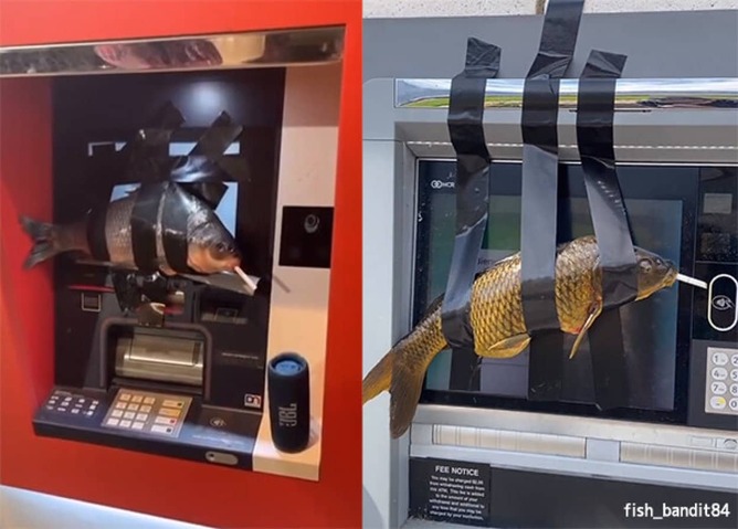 ATMのモニター部分にガムテープで貼られた魚。実に不気味な光景だ。英語で生臭いことや怪しいことを「FIshy(フィッシー)」と言うが、まさにそのものである。アメリカ、ユタ州を中心に発生している「ATM魚貼り付け事件」は十数件以上に及び、犯人は犯行を自身のInstagramに投稿していたようだ。