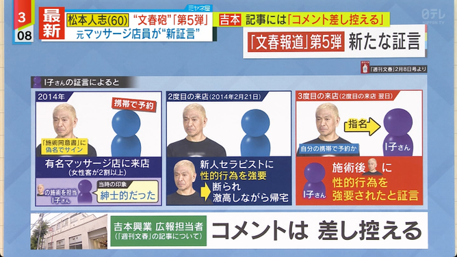 #松本人志 の週刊文春第5弾「10人目女性の新証言」「マッサージ店で行為を」…ゴゴスマは #吉本興業 を取材 https://t.co/5j01GupMb6 #芸能ニュース #ニュース