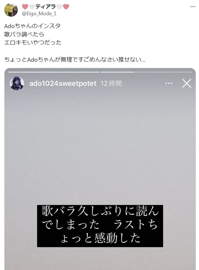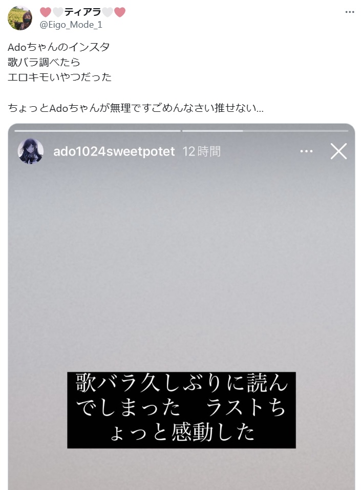 Adoさんが歌バラを読んでくれているらしい…!嬉しい。