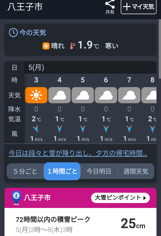 25cmとかド田舎住みワイの最寄りのスキー場の現在の積雪量より多い
