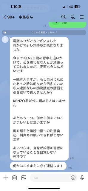 ガッツch中島さんからの要望で電話したら、これ以上誹謗中傷に耐えられないと訴えてきた。