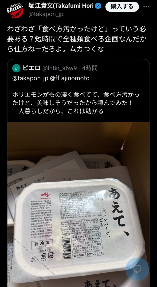 わざわざ「食べ方汚かったけど」っていう必要ある?短時間で全種類食べる企画なんだから仕方ねーだろよ。ムカつくな https://t.co/ByWuthF4Ai