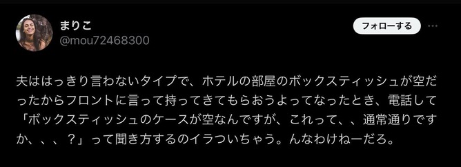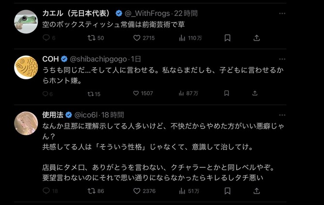ティッシュ空なんだけど😡って何も取り繕わないで言っても文句言ってきそうこいつら