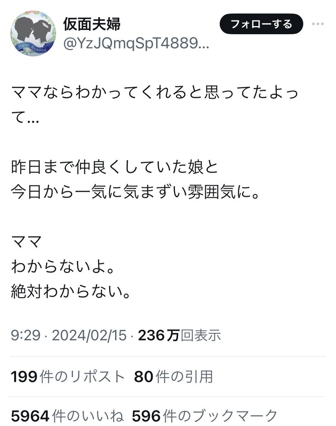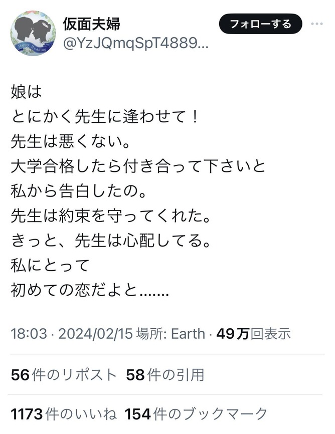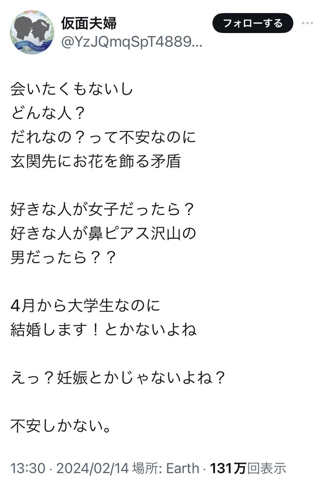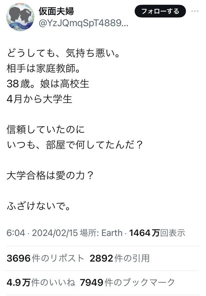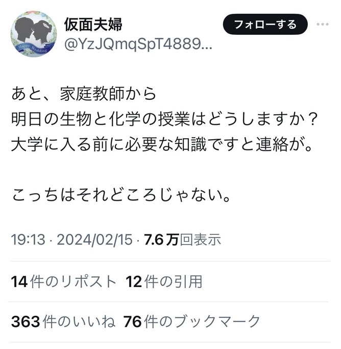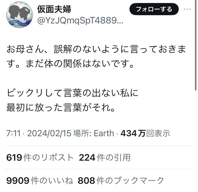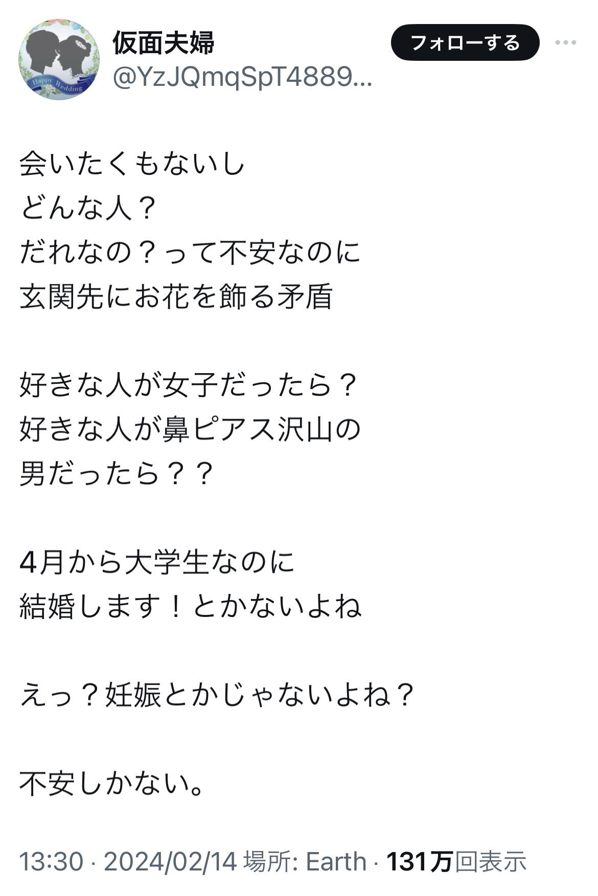 — 仮面夫婦 (@YzJQmqSpT488900) February 14, 2024