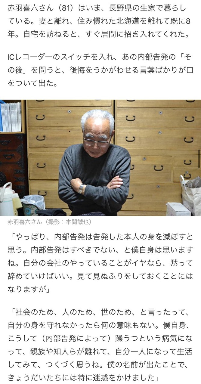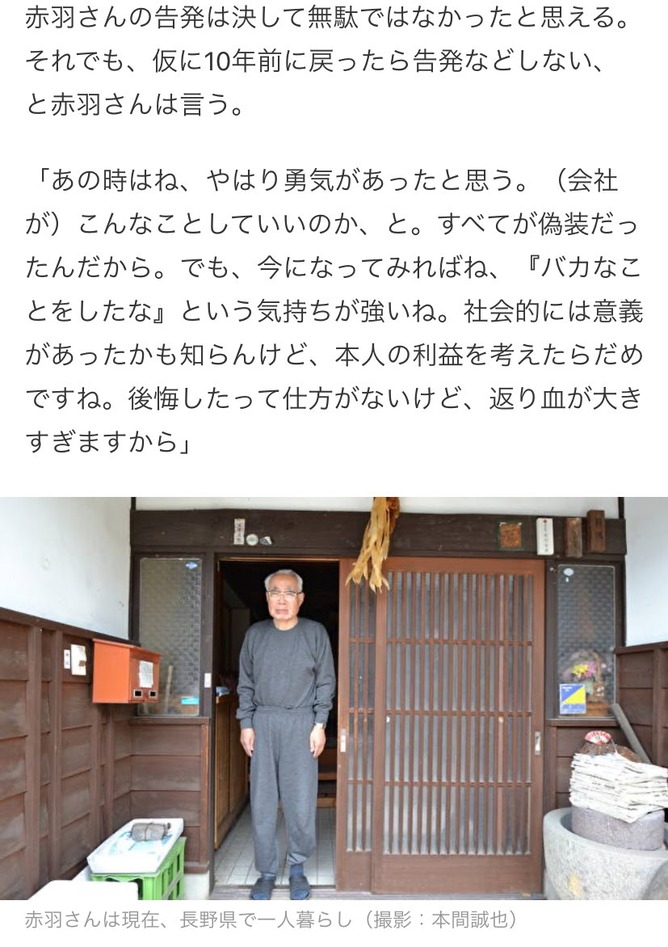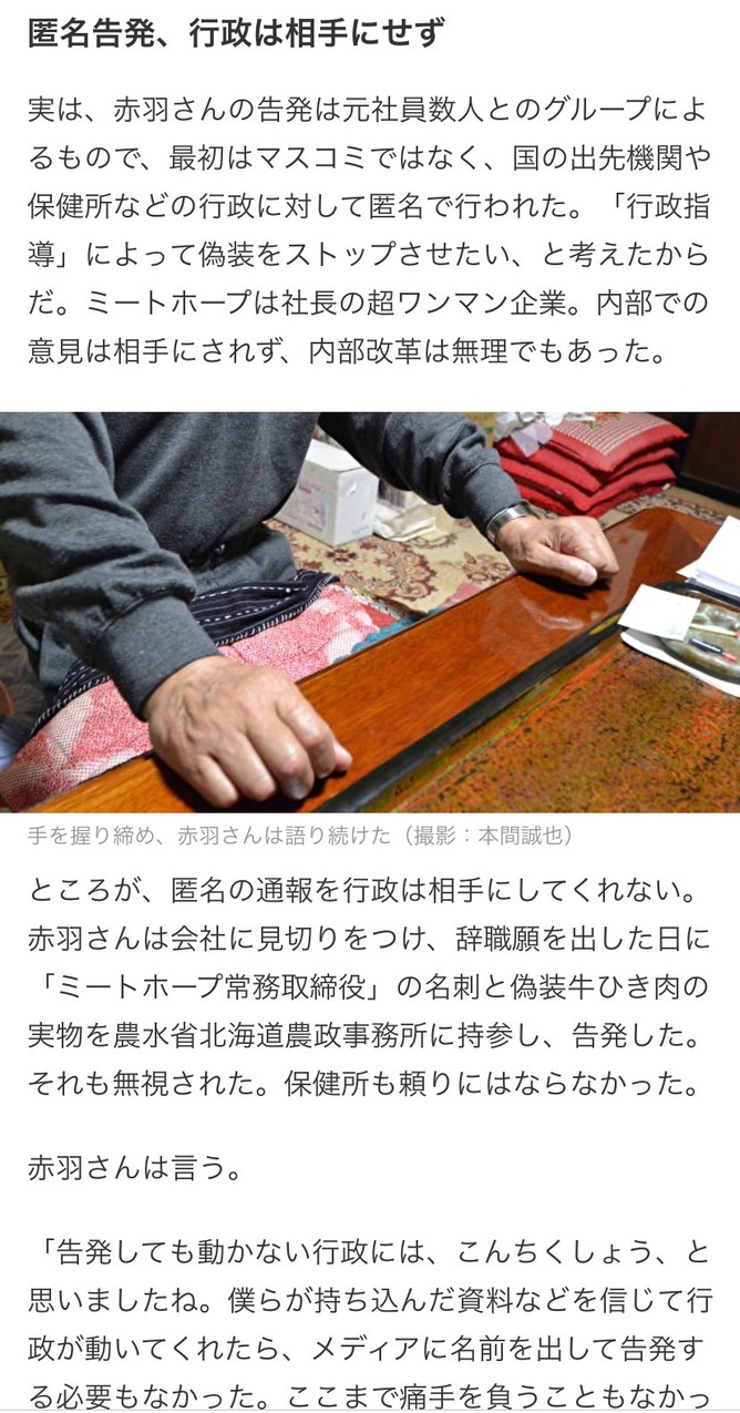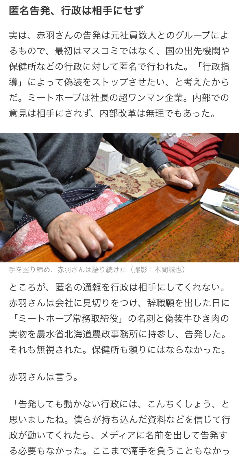 ミートホープの偽装を告発した人は告発を無視し続けたマスコミに追い回され食扶持を失った元従業員や取引先には恨まれの心労で躁鬱病になってしまいそのせいで家族には縁を切られ、後の取材では「あんなこと黙っていれば良かった」と語っていたのだが去年孤独死していた…https://t.co/j3IuYMNx1N