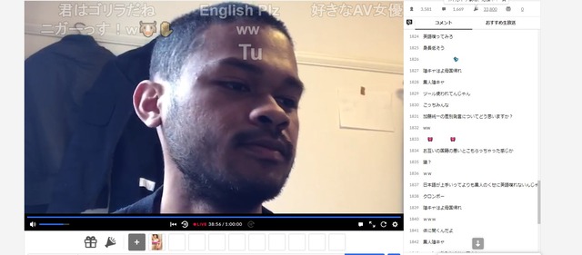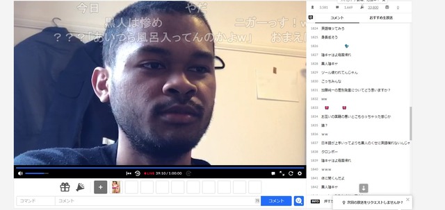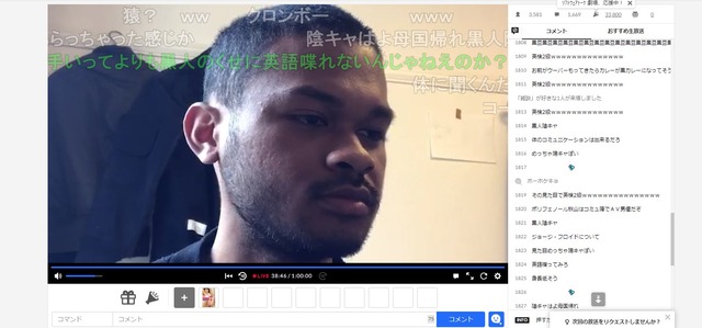 【悲報】黒人さんがニコ生始めた結果、差別用語で埋まってしまい泣いてしまう