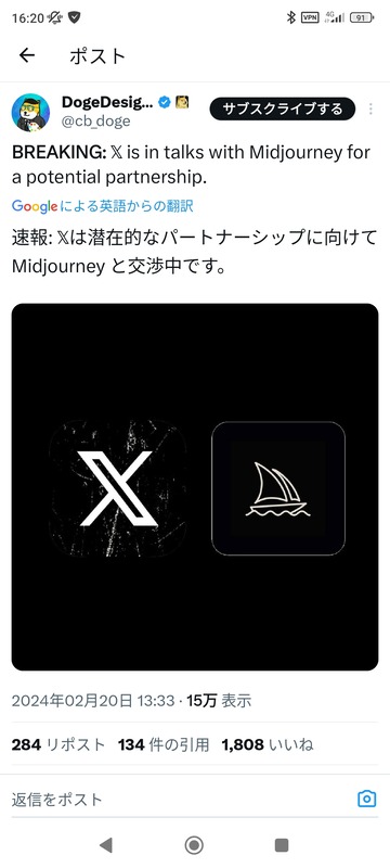 【悲報】Xがイラスト生成開発会社と提携する可能性が浮上、反AIさん終わるwwwwwwwwwww 2024/2/21 暇人\^o^/速報 1: それでも動く名無し 2024/02/21(水) 08:22:45.10 ID:er/z2ee60.net 生成AI開発会社midjourneyとパートナーシップを締結する模様 4: それでも動く名無し 2024/02/21(水) 08:24:46.65 ID:LHBnII6d0.net ほんまに終わってて草 9: それでも動く名無し 2024/02/21(水) 08:29:13.87 ID:To/GRbys0.net これでXから離れなかったらそんなもんなんやろ 続きを読む Source: 暇人\^o^/速報