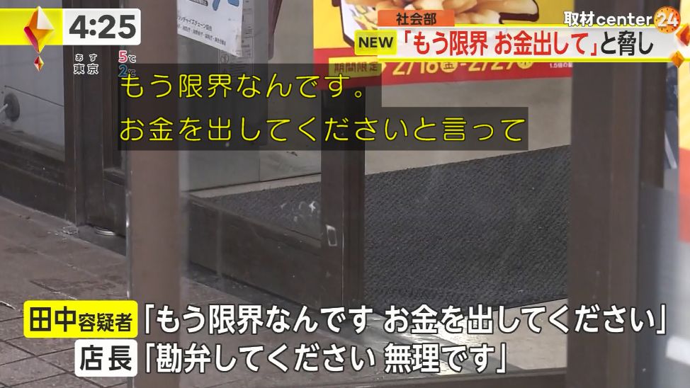 店長が「勘弁してください。無理です」と言うと、容疑者は諦めて徒歩で逃走。「2~3日食事がとれておらず、金を手に入れて食事がしたかった」と供述しているという。 pic.twitter.com/OR70k7vxP6