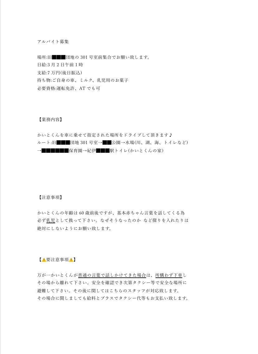 【画像】日給7万の闇バイト、仕事内容が意味不明すぎて確実にヤバイ 2024/2/24 キニ速 1:名無しさん@おーぷん: 24/02/24(土) 00:14:24 ID:y6c8 4:名無しさん@おーぷん: 24/02/24(土) 00:15:12 ID:YZWW こわい 5:名無しさん@おーぷん: 24/02/24(土) 00:15:34 ID:rCEe SCPって奴か? 6:名無しさん@おーぷん: 24/02/24(土) 00:15:47 ID:cEsU 誘拐でもやるんかと思ったら60歳で草 続きを読む Source: キニ速